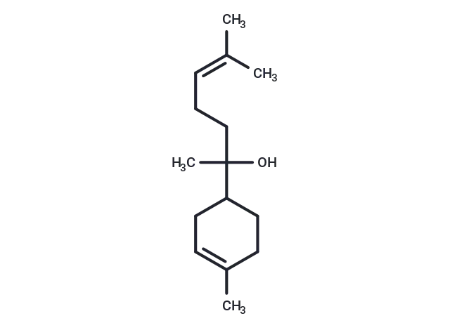 – (±)-α-Bisabolol (Bisabolol) isa sesquiterpenol extracted from essential oils of chamomile, candida and other plants. It isa natural antiseptic with soothing, antiirritating, anti-inflammatory, antioxidant and anticancer activities. (±)-α-Bisabolol has anticancer effects on A549 NSC-LC cells by inducing cell cycle arrest, mitochondrial death and inhibiting PI3K/Akt signaling (IC50 = 15 μM). (±)-α-Bisabolol can induce apoptosis of glioma cells.