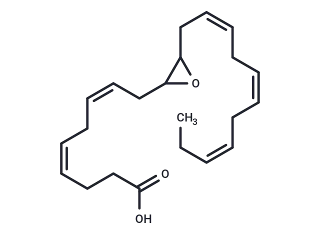 – Cytochrome P450 metabolism of polyunsaturated fatty acids produces numerous bioactive epoxide regioisomers. (±)10(11)-EpDPA is a docosahexaenoic acid epoxygenase metabolite, derived via epoxidation of the 10,11-double bond of DHA. It has been detected in rat brain and spinal cord, as well as human serum, and acts as a substrate for soluble epoxide hydrolase with a Km value of 5.1 μM. (±)10(11)-EpDPA and other epoxy metabolites of DHA are reported to demonstrate antihyperalgesic activity in inflammatory and neuropathic pain models and to potently inhibit angiogenesis and tumor growth in in vitro assays.