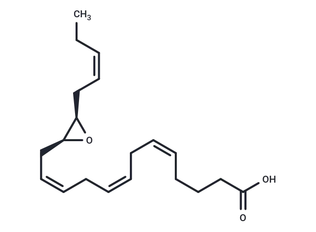 – (±)14(15)-EpETE, an eicosatetraenoic acid derivative containing an epoxy group, is an intestinal microbial lipid metabolite that attenuates cisplatin chemotherapy-induced nausea and vomiting in rats by inhibiting Substance P release through targeting GCG/PKA signaling and is commonly used to study inflammation and metabolism.