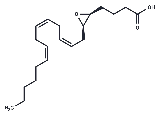 – 5(6)-EET is a fully racemic version of the enantiomeric forms biosynthesized from arachidonic acid by cytochrome P450 enzymes. In solution, 5(6)-EET degrades into 5,6-DiHET and 5(6)-δ-lactone, which can be converted to 5(6)-DiHET and quantified by GC-MS. In neuroendocrine cells, such as the anterior pituitary and pancreatic islets, 5(6)-EET has been implicated in the mobilization of calcium and hormone secretion. 5(6)-EET is an inhibitor of T-type voltage-gated calcium channels (Cav3) that inhibits isoforms Cav3.1, Cav3.2 (IC50 = 0.54 μM), and Cav3.3 and decreases nifedipine-resistant phenylephrine-induced vasoconstriction in isolated mouse mesenteric arteries via Cav3.2 blockade when used at a concentration of 3 μM. In addition, it is a substrate of COX-1 and COX-2, as measured by oxygen consumption and product formation assays when used at a concentration of 50 μM. (±)5(6)-EET is provided as a mixture of the free acid and lactone.