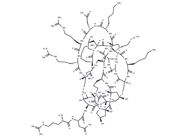 – O=C1[C@]2(N(C(=O)[C@]([C@@H](C)O)(NC(=O)[C@]3(NC(=O)[C@@H](NC([C@@H](NC([C@H](CCCNC(=N)N)N)=O)CC(O)=O)=O)CSSC[C@]4(C(=O)N[C@@H](CCCCN)C(=O)N5[C@](C(=O)N[C@@H](CCSC)C(=O)N[C@@H](CCCCN)C(=O)N[C@@](CSSC3)(C(=O)N[C@H](C(N[C@H](C(N)=O)C)=O)CSSC[C@](NC(=O)[C@H](CCCCN)NC(=O)[C@H](CCCNC(=N)N)NC(=O)[C@]6(N1C[C@H](O)C6)[H])(C(=O)N[C@@H](CCCCN)C(=O)N[C@@H](CC(O)=O)C(=O)N[C@@H](CCCNC(=N)N)C(=O)N[C@@H](CCCNC(=N)N)C(=O)N4)[H])[H])(C[C@@H](O)C5)[H])[H])[H])[H])C[C@H](O)C2)[H]
