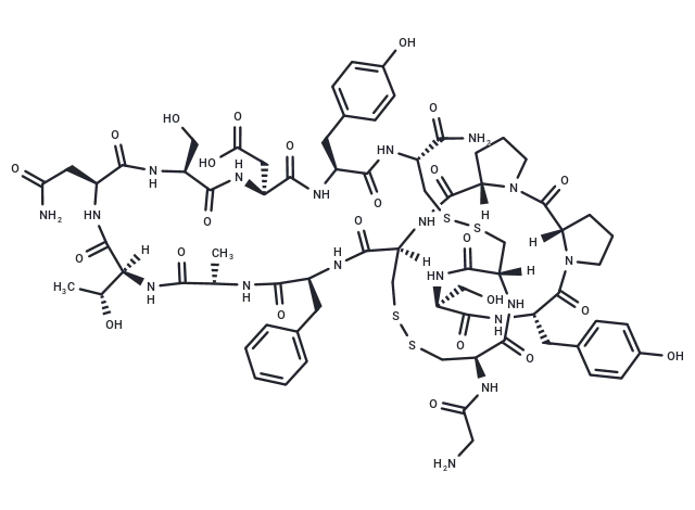 – O=C1[C@]2(N(C(=O)[C@H](CC3=CC=C(O)C=C3)NC(=O)[C@H](CO)NC(=O)[C@]4(NC(=O)[C@@H](NC(CN)=O)CSSC[C@](NC(=O)[C@]5(N1CCC5)[H])(C(=O)N[C@@H](CC6=CC=CC=C6)C(=O)N[C@@H](C)C(=O)N[C@@]([C@@H](C)O)(C(=O)N[C@@H](CC(N)=O)C(=O)N[C@@H](CO)C(=O)N[C@@H](CC(O)=O)C(=O)N[C@@H](CC7=CC=C(O)C=C7)C(=O)N[C@H](C(N)=O)CSSC4)[H])[H])[H])CCC2)[H]