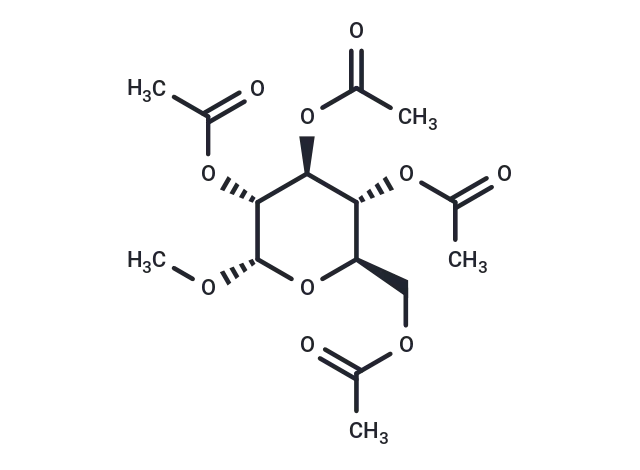 – α-D-Glucopyranoside, methyl, 2,3,4,6-tetraacetate is a biochemical reagent utilized in glycobiology research. Glycobiology focuses on the study of carbohydrates, including their structure, synthesis, biological functions, and evolutionary role. This field encompasses carbohydrate chemistry, glycan biosynthesis and degradation enzymology, protein-glycan interactions, and the role of glycans in biological systems, closely linking to fundamental research, biomedicine, and biotechnology.