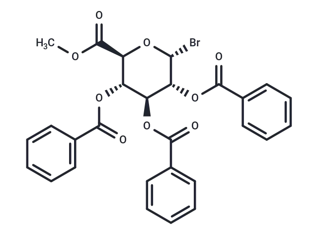 – α-D-Glucopyranuronic acid,1-bromo-1-deoxy,methyl ester,2,3,4-tribenzoate is a biochemical reagent utilized in glycobiology research. Glycobiology explores carbohydrate structure, synthesis, biology, and evolution, encompassing aspects such as carbohydrate chemistry, enzymology of glycan formation and degradation, protein-glycan interactions, and the roles of glycans in biological systems, linking closely with fundamental research, biomedicine, and biotechnology.