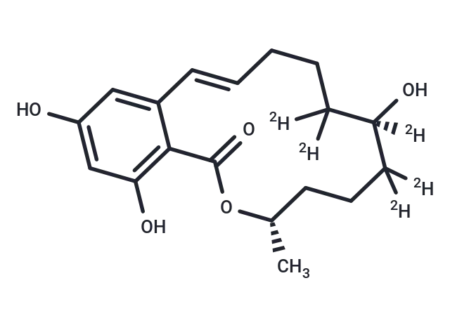 – α-Zearalenol-d5 is a deuterated compound of α-Zearalenol. α-Zearalenol has a CAS number of 36455-72-8. α-Zearalenol is one of the major metabolites of Zearalenone. α-Zearalenol has structural analogy to estrogen, thus α-Zearalenol can bind to estrogen receptors (ERs).