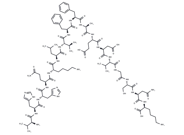 – [C@@H](CC1=CN=CN1)(NC([C@H](CC2=CN=CN2)NC([C@H](C(C)C)N)=O)=O)C(N[C@H](C(N[C@H](C(N[C@H](C(N[C@H](C(N[C@@H](CC3=CC=CC=C3)C(N[C@@H](CC4=CC=CC=C4)C(N[C@H](C(N[C@H](C(N[C@H](C(N[C@H](C(NCC(N[C@H](C(N[C@H](C(N[C@@H](CCCCN)C(O)=O)=O)CC(N)=O)=O)CO)=O)=O)C(C)C)=O)CC(O)=O)=O)CCC(O)=O)=O)C)=O)=O)=O)[C@@H](C)C)=O)CC(C)C)=O)CCCCN)=O)CCC(N)=O)=O