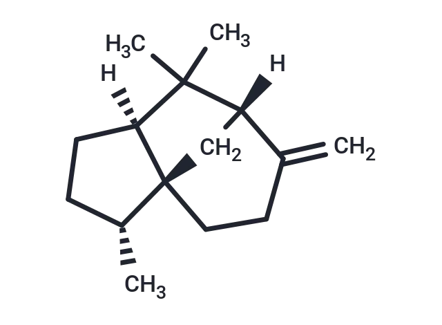 – β-Cedrene ((+)-β-Cedrene), a sesquiterpene isolated from both Centaurea kotschyi var. kotschyi and Centaurea kotschyi var. decumbens, exhibits a broad range of biological activities, including antibacterial, anti-inflammatory, antispasmodic, tonic, diuretic, sedative, insecticidal, and antifungal properties. Additionally, β-Cedrene acts as a potent competitive inhibitor of the CYP2B6-mediated bupropion hydroxylase activity, demonstrating a K i value of 1.6 μM [1] [2].