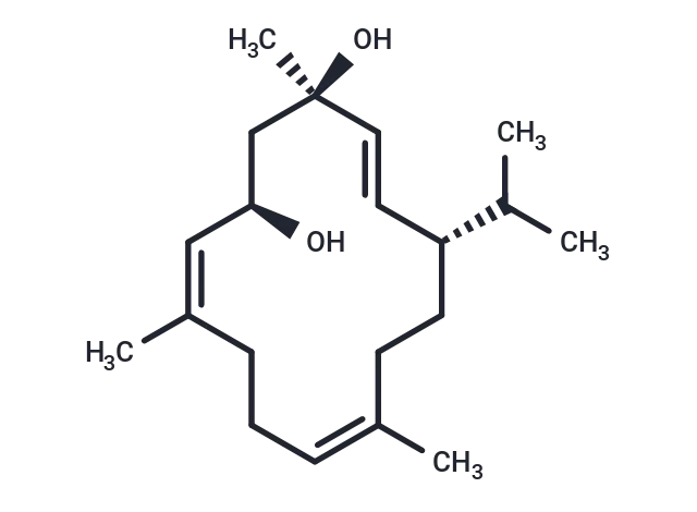 – β-Cembrenediol (β-CBT) is a natural product from tobacco plants that is found in cigarette smoke condensate. β-CBT inhibits induction of the early antigen of Epstein-Barr virus (EA-EBV) by 12-O-tetradecanoylphorbol-13-acetate (TPA) in vitro (IC50 = 21.9 μM). It inhibits tumor promoting effects of TPA on 7,12-demethylbenz[a]anthracene-induced papilloma formation in vivo. β-CBT is also released into soil by flue-cured tobacco plants and exerts autotoxicity as well as phytotoxic activity against L. sativa seedlings.