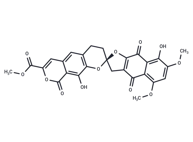 – COC(=O)c1cc2cc3CC[C@]4(CC5=C(O4)C(=O)c4c(O)c(OC)cc(OC)c4C5=O)Oc3c(O)c2c(=O)o1 |c:13|