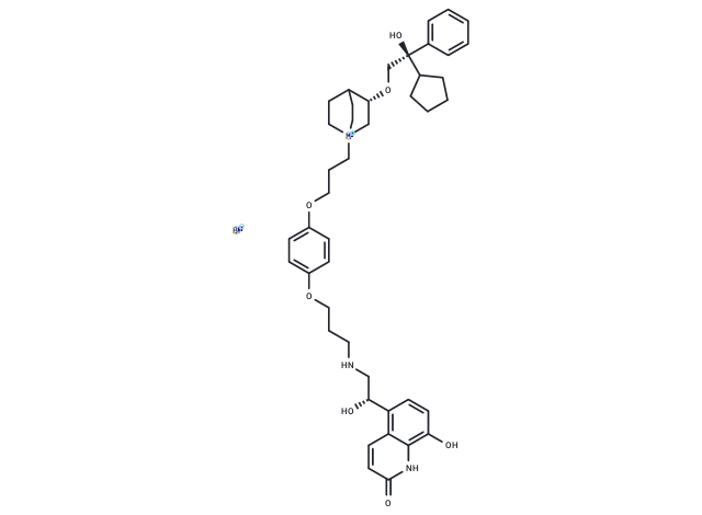 – [Br-].O[C@H](CNCCCOc1ccc(OCCC[N+]23CCC(CC2)[C@@H](C3)OC[C@@](O)(C2CCCC2)c2ccccc2)cc1)c1ccc(O)c2[nH]c(=O)ccc12