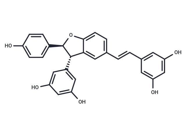 – δ-Viniferin is a resveratrol dehydrodimer and an isomer of ε-Viniferin (epsilon-Viniferin). ε-Viniferin, the dimer of Resveratrol, exhibits potent inhibitory effects on all CYP activities with K i values ranging from 0.5-20 μM. Additionally, ε-Viniferin possesses strong antioxidant, anti-inflammatory, anti-diabetic, and anti-neurodegenerative properties [1].