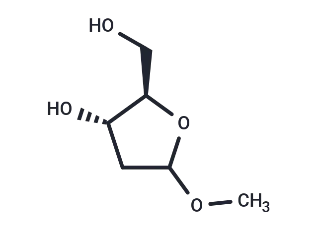 – 1-O-Methyl-2-deoxy-D-ribose is a ribose derivative that facilitates the synthesis of 2-deoxy-D-ribose by introducing a methoxy protecting group at the anomeric carbon through a one-step reaction under acidic conditions. This compound can be utilized in research focused on the synthesis of chemical materials.