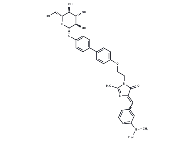 – O(C1=CC=C(C=C1)C2=CC=C(OCCN3C(=O)C(=CC4=CC(N(C)C)=CC=C4)N=C3C)C=C2)[C@@H]5O[C@H](CO)[C@@H](O)[C@H](O)[C@H]5O