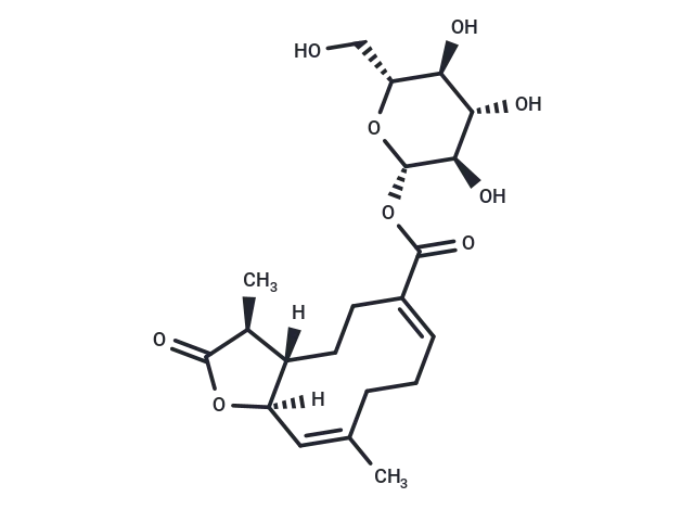 – [H][C@@]12CCC(=C/CCC(C)=C/[C@@]1([H])OC(=O)[C@H]2C)C(=O)O[C@@H]1O[C@H](CO)[C@@H](O)[C@H](O)[C@H]1O |c:4,9|