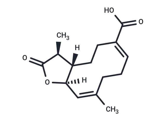 – [H][C@]12OC(=O)[C@@H](C)[C@]1([H])CCC(=C/CCC(C)=C/2)C(O)=O |c:12,17|