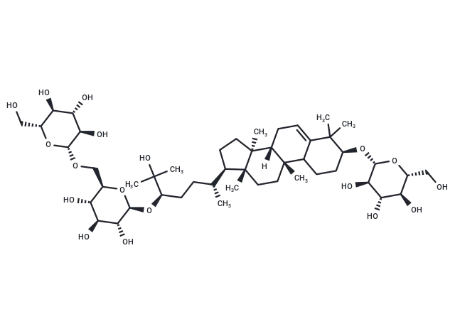 – [H][C@@]12CC=C3C(CC[C@H](O[C@@H]4O[C@H](CO)[C@@H](O)[C@H](O)[C@H]4O)C3(C)C)[C@]1(C)CC[C@]1(C)[C@H](CC[C@@]21C)[C@H](C)CC[C@@H](O[C@@H]1O[C@H](CO[C@@H]2O[C@H](CO)[C@@H](O)[C@H](O)[C@H]2O)[C@@H](O)[C@H](O)[C@H]1O)C(C)(C)O |c:3|