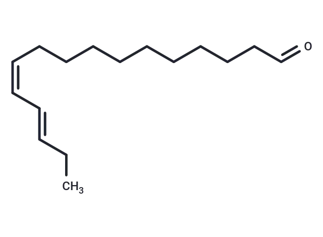 – (11Z,13E)-Hexadecadienal is a synthetic isomer derived from hexane extracts of unmated female or femal gland pheromones. It can be isolated from a sex pheromone blend containing (11Z,13Z)-hexadecadien-1-ol, (11Z,13E)-hexadecadien-1-ol, and (3Z,6Z,9Z,12Z,15Z)-tricosapentaene (C23 pentaene), which is attractive to male navel orangeworm moths (Amyelois transitella (Walker) [Lepidoptera: Pyralidae]).