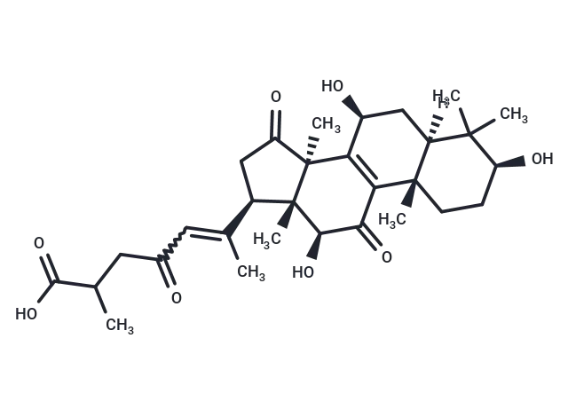 – 12β-Hydroxyganoderenic acid B (Compound 15) is a triterpenoid compound isolated from Ganoderma lucidum. Triterpenoid compounds extracted from Ganoderma have been reported to exhibit anti-tumor, antibacterial, antiviral, and anti-aging activities.