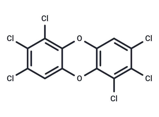 – 1,2,3,6,7,8-Hexachlorodibenzo-p-dioxin, a polychlorinated dibenzodioxin (PCDD), acts as an agonist for the aryl hydrocarbon receptor (AhR; EC50s = 5.4 and 9.3 nM at 4 and 8 h, respectively, in a reporter assay). It has been observed to reduce antibody production against sheep red blood cells in mice at doses of 0.5 and 2 µg/kg. This compound has been detected in animal feed and in the vicinity of municipal waste incinerators.