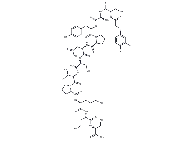 – C([C@H](CC1=CC=C(O)C=C1)NC([C@@H](NC([C@@H](NC(COC2=CC(Cl)=C(F)C=C2)=O)CO)=O)C)=O)(=O)N3[C@H](C(N[C@H](C(N[C@H](C(N[C@H](C(=O)N4[C@H](C(N[C@H](C(N[C@H](C(N[C@H](C(N)=O)CO)=O)CCO)=O)CCCC)=O)CCC4)[C@@H](C)C)=O)CO)=O)CC(O)=O)=O)CCC3