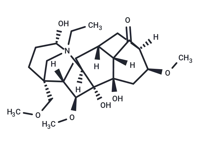 – [H][C@]12C[C@]3([H])[C@]([H])(C1=O)[C@](O)(C[C@@H]2OC)[C@@]1(O)[C@@H](OC)[C@@]2([H])C33[C@@H](O)CC[C@@]2(COC)CN(CC)[C@]13[H] |TLB:33:32:22:15.17,9:15:22:27.31.32,3:22:27.31.32:15.17,2:3:35:20.17,7:5:35:20.17,THB:23:22:27.31.32:15.17,28:27:22:15.17,32:35:20.17:9.5.3,16:15:22:27.31.32,17:20:31.32.35:23.26.25,18:17:22:27.31.32,18:17:35:9.5.3,10:9:35:20.17,11:9:35:20.17,26:27:22:15.17|