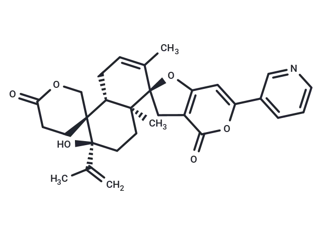 – CC(=C)[C@@]1(O)CC[C@@]2(C)[C@@H](CC=C(C)[C@]22Cc3c(O2)cc(oc3=O)-c2cccnc2)[C@]11CCC(=O)OC1 |t:11|