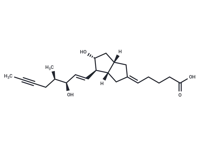 – Iloprost is a second generation structural analog of prostacyclin (PGI2) with about ten-fold greater potency than the first generation stable analogs, typified by carbaprostacyclin. Iloprost binds with equal affinity to the recombinant human IP and EP1 receptors with a Ki value of 11 nM. Most preparations of iloprost contain 16(S) and 16(R) stereoisomers. 16(R)-Iloprost inhibits platelet aggregation with an IC50 value of 65 nM.