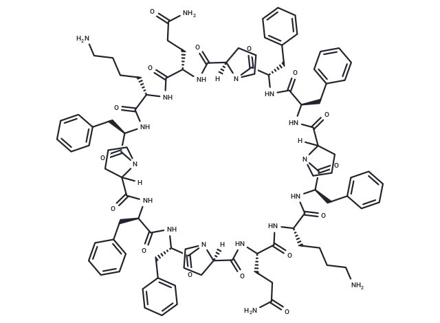 – O=C1N2C(C(=O)N[C@H](CC3=CC=CC=C3)C(=O)N[C@@H](CC4=CC=CC=C4)C(=O)N5[C@@](C(=O)N[C@@H](CCC(N)=O)C(=O)N[C@@H](CCCCN)C(=O)N[C@H](CC6=CC=CC=C6)C(=O)N7C(C(=O)N[C@H](CC8=CC=CC=C8)C(=O)N[C@@H](CC9=CC=CC=C9)C(=O)N%10[C@@](C(=O)N[C@@H](CCC(N)=O)C(=O)N[C@@H](CCCCN)C(=O)N[C@@H]1CC%11=CC=CC=C%11)(CCC%10)[H])(CCC7)[H])(CCC5)[H])(CCC2)[H]