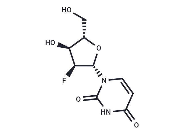 – 2′-Deoxy-2′-fluoro-l-uridine, an L-nucleoside compound, is a potent and selective inhibitor of viral RNA polymerase, effectively inhibiting RNA virus replication [1].