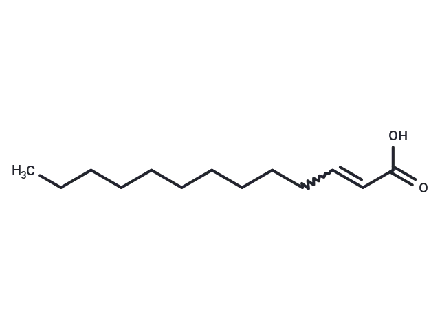 – 2-Tridecenoic acid is an organic compound classified as a fatty acid. It has a slightly rancid odor and is commonly found in various foods, including dairy products and meats. In the chemical and pharmaceutical industries, 2-Tridecenoic acid serves multiple purposes, particularly as an intermediate in the synthesis of various chemicals and pharmaceuticals. Furthermore, it holds potential for inhibiting bacterial infections and diseases related to inflammation.