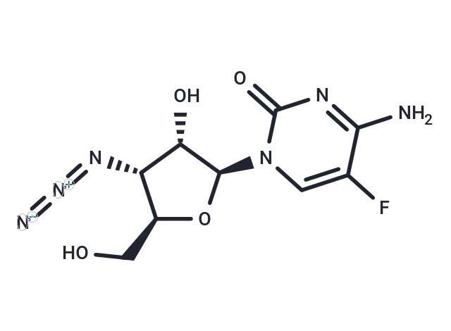 – 3′-Azido-3′-deoxy-5-fluoro-beta-L-cytidine is a Nucleoside Derivative – L-nucleoside, Azido-nucleoside, Fluoro-modified nucleoside, 5-Modified pyrimidine nucleoside.