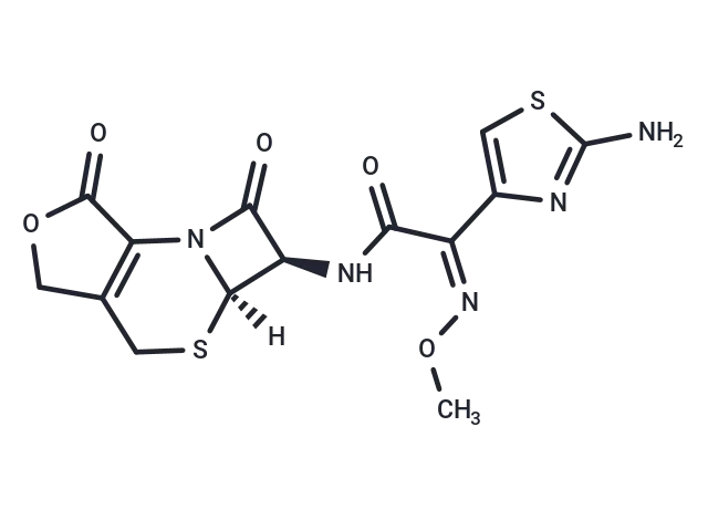 – O=C1N2[C@@]([C@@H]1NC(/C(=NOC)/C3=CSC(N)=N3)=O)(SCC4=C2C(=O)OC4)[H]