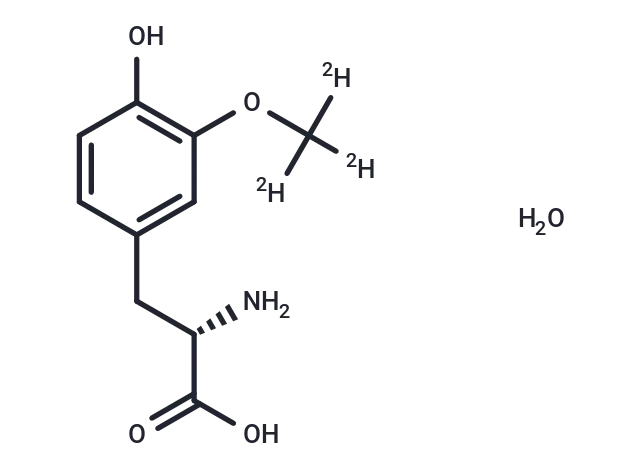 – 3-Methoxy-L-tyrosine-d3 monohydrate is a deuterated compound of 3-Methoxy-L-tyrosine monohydrate. 3-Methoxy-L-tyrosine monohydrate has a CAS number of 200630-46-2. 3-O-methyl-L-DOPA is a metabolite of L-DOPA , produced by the activity of catechol O-methyltransferase. 3-O-methyl-L-DOPA may have effects of its own or it may compete with the actions of L-DOPA.