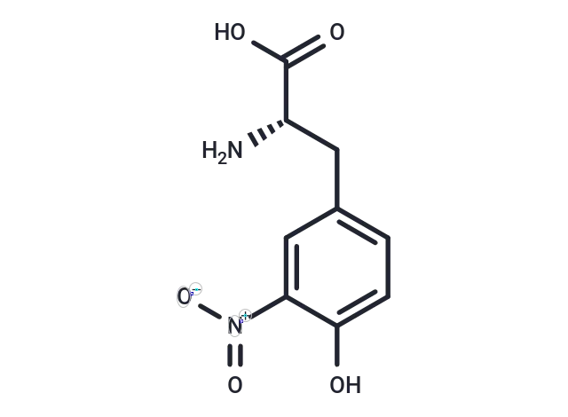 – 3-Nitro-L-tyrosine (3-Nitrotyrosine) is the major product from the spontaneous reaction of peroxynitrite with tyrosine. Formation of nitrotyrosine can indicate the formation of peroxynitrite by a nitric oxide (NO)-dependent oxidative damage.