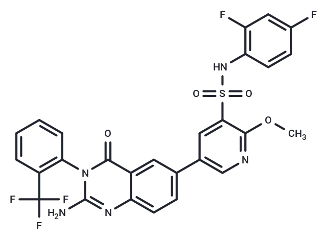 – O=C1N(C(N)=NC=2C1=CC(=CC2)C=3C=C(S(NC4=C(F)C=C(F)C=C4)(=O)=O)C(OC)=NC3)C5=C(C(F)(F)F)C=CC=C5