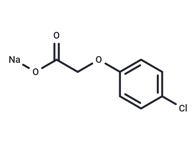 – 4-Chlorophenoxyacetic acid (sodium) (4-CPA (sodium); p-Chlorophenoxyacetic acid (sodium)) is a chlorinated phenolic compound that functions as both a plant growth regulator and herbicide. At low concentrations, it promotes plant growth, while at high concentrations, it inhibits growth, particularly in dicotyledonous plants. This compound can serve as a biochemical material or organic compound in life sciences research.
