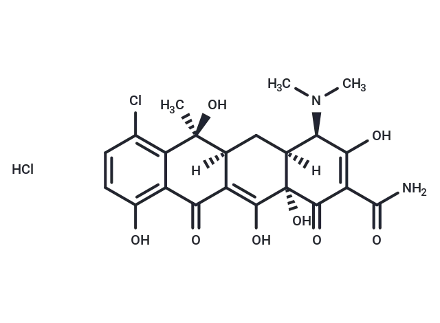 – Cl.[H][C@@]12C[C@@]3([H])C(=C(O)[C@]1(O)C(=O)C(C(N)=O)=C(O)[C@@H]2N(C)C)C(=O)c1c(O)ccc(Cl)c1[C@@]3(C)O |t:5,16|