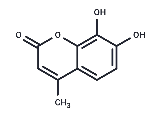 – 4-Methyldaphnetin (DHMC) is a potent inhibitor (low micromolar) of lipid peroxidation and scavengers of superoxide anion radicals and of aqueous alkylperoxyl radicals, but may be pro-oxidant (enhancing generation of hydroxyl radicals) in the presence of free iron ions.2. 4-Methyldaphnetin(7,8-Dihydroxy-4-methylcoumarin) inhibits the proinflammatory 5-lipoxygenase enzyme at micromolar concentrations.