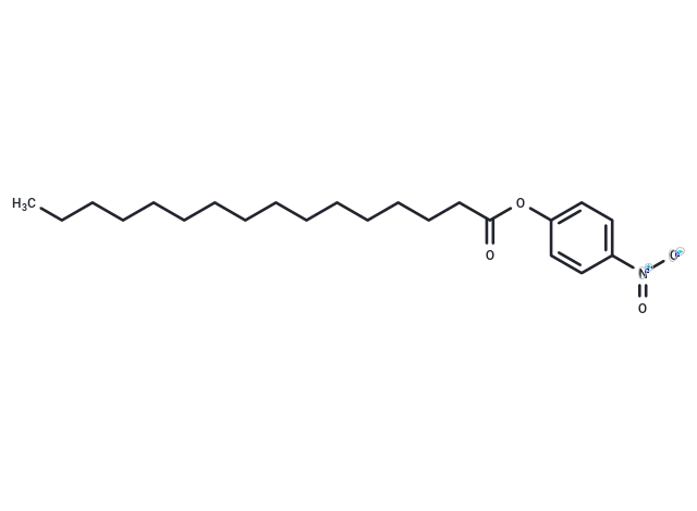 – 4-Nitrophenyl palmitate serves as a colorimetric substrate for lipase and esterase, enabling the quantification of enzyme activity through the release and colorimetric detection of 4-nitrophenol at 410 nm following enzymatic hydrolysis. This compound facilitates the characterization of enzyme activity across diverse bacterial and mammalian sources, including Burkholderia and porcine pancreatic lipases.