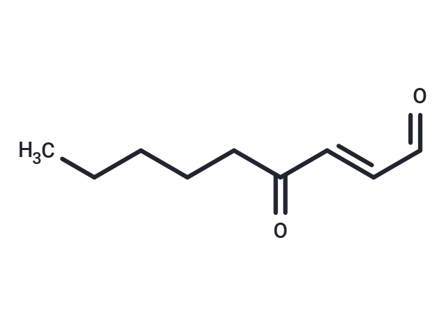 – 4-hydroxy Nonenal is a lipid peroxidation product derived from oxidized ω-6 polyunsaturated fatty acids such as arachidonic acid and linoleic acid. [1] [2] It exhibits various biological activities such as cytotoxicity, growth inhibiting activity, genotoxicity, and chemotactic activity and has been widely used as a marker of lipid peroxidation.[1][2][3] 4-oxo-2-Nonenal is a more recently identified product of lipid peroxidation.[4][5][6] It actively modifies histidine and lysine residues on proteins and causes protein cross-linking. [7][8] 4-oxo-2-Nonenal also modifies 2′-deoxyguanosine, further implicating lipid peroxidation in mutagenesis and carcinogenesis.[4]