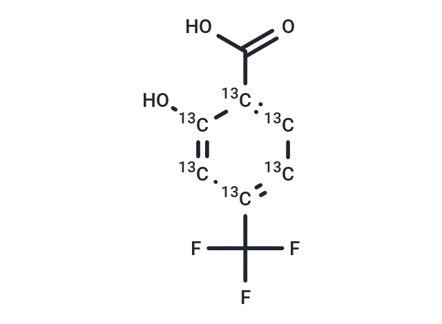 – 4-Trifluoromethylsalicylic acid-13C6 is 13C-labeled 4-Trifluoromethylsalicylic acid, mainly used as a quantitative tracer in drug development. 4-Trifluoromethylsalicylic acid is also a platelet aggregation inhibitor.