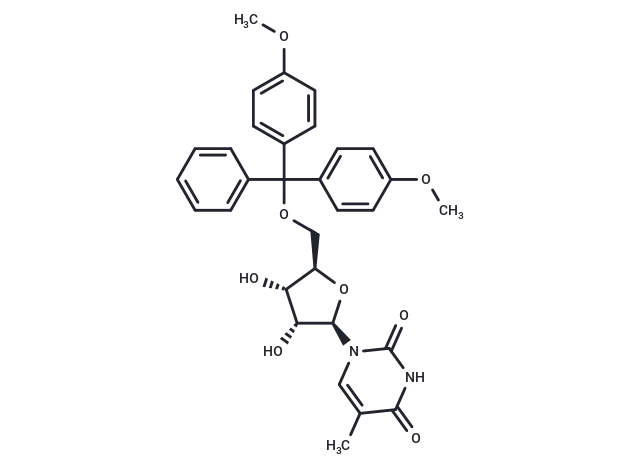 – C(OC[C@H]1O[C@H]([C@H](O)[C@@H]1O)N2C(=O)NC(=O)C(C)=C2)(C3=CC=C(OC)C=C3)(C4=CC=C(OC)C=C4)C5=CC=CC=C5