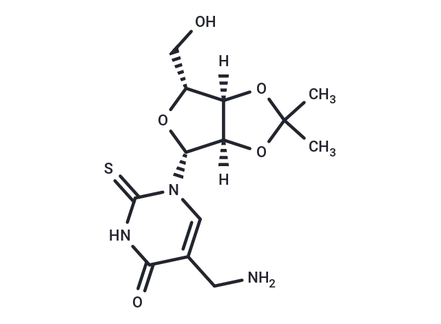 – 5-Aminomethyl-2′,3′-di-O-isopropylidene 2-thiouridine is a Nucleoside Derivative – 5-Modified pyrimidine nucleoside; Amino nucleoside; Thio-nucleoside.