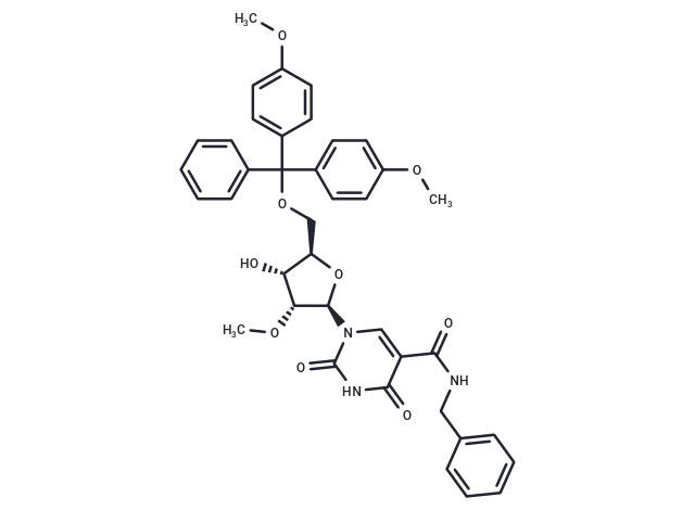 – C(OC[C@H]1O[C@H]([C@H](OC)[C@@H]1O)N2C=C(C(NCC3=CC=CC=C3)=O)C(=O)NC2=O)(C4=CC=C(OC)C=C4)(C5=CC=C(OC)C=C5)C6=CC=CC=C6