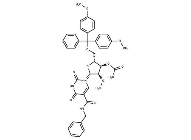– C(OC[C@@H]1[C@@H](OC(C)=O)[C@@H](OC)[C@@H](O1)N2C=C(C(NCC3=CC=CC=C3)=O)C(=O)NC2=O)(C4=CC=C(OC)C=C4)(C5=CC=C(OC)C=C5)C6=CC=CC=C6