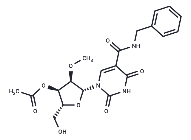 – 5-Benzylaminocarbonyl-3′-O-acetyl-2′-O-methyluridine is a 5-modified pyrimidine nucleoside; 2′-O-Methyl nucleoside.