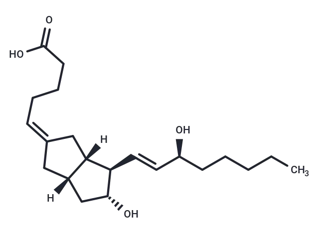 – 5-cis Carbaprostacyclin, a stable analog of PGI2 and an isomer of carbaprostacyclin, is a weak inhibitor of human platelet aggregation with an IC50 of 2.8 μM compared to 0.3 μM for carbaprostacyclin. It is a much weaker effector of rabbit mesenteric artery relaxation with an EC50 of 104 μM compared to 5.9 μM for carbaprostacyclin and even antagonizes the adenylate cyclase activation induced by carbaprostacyclin.