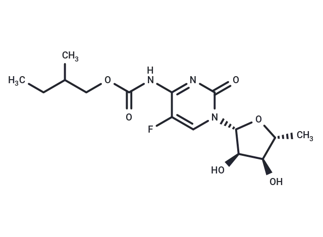 – 5′-Deoxy-5-fluoro-N4-[(2-methylbutoxy)carbonyl]cytidine is a Nucleoside Derivative – 5′-Modified nucleoside; 5-Modified pyrimidine nucleoside, Fluoro-modified nucleoside; Drugs and Inhibitors; 5′-Deoxy nucleoside; Capecitabine impurity E.