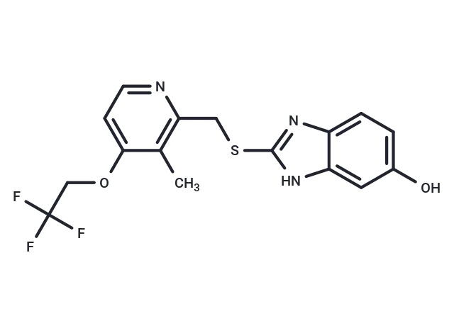 – 5-Hydroxy Lansoprazole Sulfide is an inhibitor of fatty acid synthase (FASN). FASN, which is responsible for de-novo synthesis of lipids, has been found to be overexpressed in cancerous tissue. 5-Hydroxy Lansoprazole Sulfide specifically inhibits enoyl reductase, and was found to more effectively inhibit FASN function than lansoprazole and was also more efficient at regulating NHEJ repair of oxidative DNA damage via PARP1.