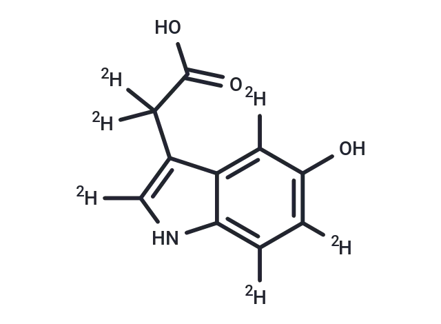 – 5-Hydroxyindole-3-acetic Acid-d6 is a deuterated compound of 5-Hydroxyindole-3-acetic Acid. 5-Hydroxyindole-3-acetic Acid has a CAS number of 54-16-0. 5-Hydroxyindoleacetic acid (5HIAA) is a breakdown product of serotonin that is excreted in the urine. Serotonin and 5HIAA are produced in excess amounts by carcinoid tumors, and levels of these substances may be measured in the urine to test for carcinoid tumors (NCI).